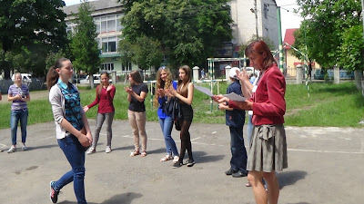 ТРЕТІЙ ДЕНЬ 24 червня. ДЕНЬ спорту. Олена приїхала і зразу взялася до роботи - підготувала для учнів наочність з лексикою для кращого спілкування. Їй допомагала Наталя Дмитрівна.